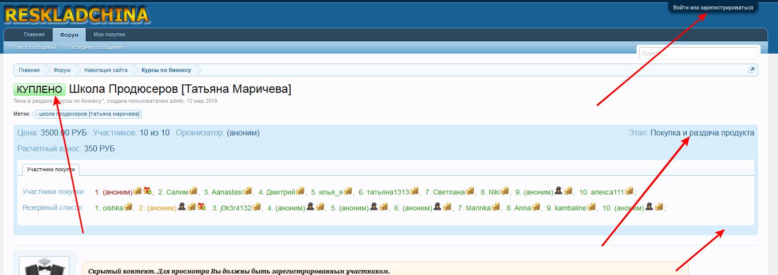 Порядок участия в складчин и рескладчин на сайте